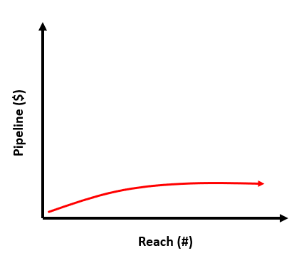 The second example, above, shows a plateau reached where the sales pipeline remains constant despite increasing social media reach. This points to the wrong audience, personas, market or content being used.